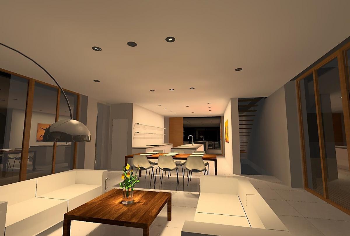 Obklopit se světlem, které nás neruší, jsme dokázali navrhnout v této vile. Základem osvětlení ve vile byl plošný způsob světla docílený zapuštěnými svítidly, která disponují funkcí stmívání. Povedlo se vytvořit několik základních scén světla, které výrazně mění celou atmosféru prostoru dle aktuálního využití a nálady.
