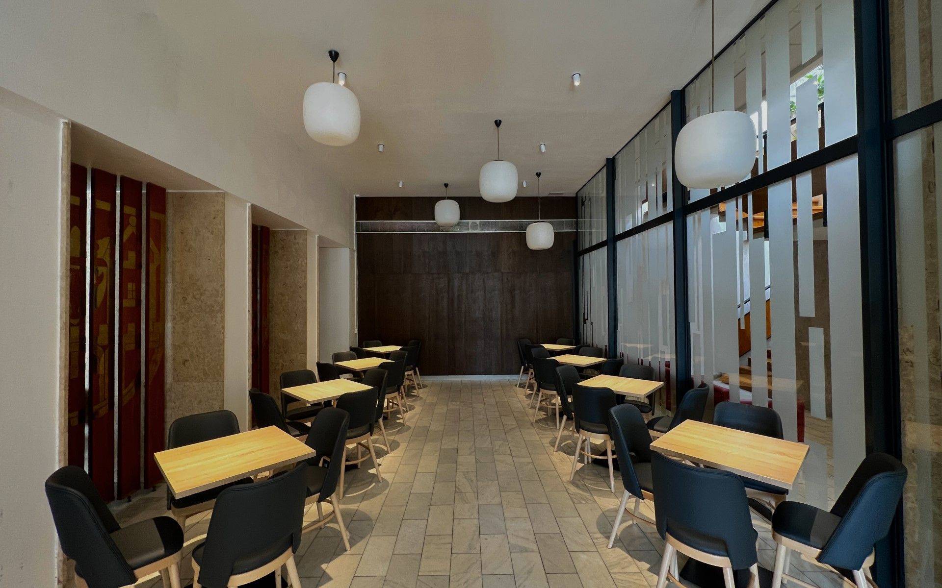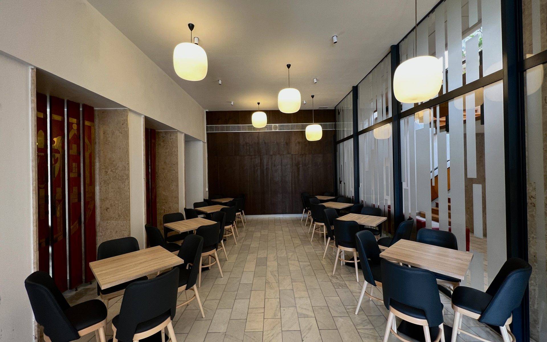 V Kavárně v Kulturním domě Nové Strašecí jsou použity inovativní svítidla, která jsou akcentní bodová a stropní zároveň. Jsou výsuvná a otočná o 360° pro individuální orientaci svícení. Jedná se tedy o chytré řešení použití svítidel v těchto prostorách, kde chceme použít akcentní osvětlení stolků nebo plošné osvětlení díky zavěšených retro lustrům.